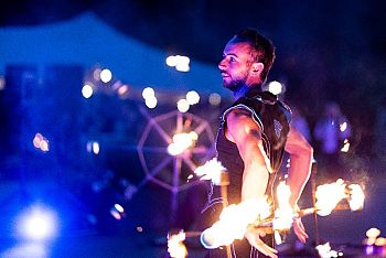 Unsere Feuershow ist eine spektakuläre Darbietung – zentraler Teil der Show sind großartige Flammeneffekte, welche artistisch und tänzerisch inszeniert werden. Auf den Punkt choreographiert, mit lebendiger Interaktion zwischen den Artisten und dem Publikum entstehen Eindrücke voller Emotionen.