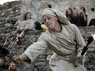 ...denn FORZARELLO ...die Gaukler Ihres Vertrauens tun alles für Euch: FORZARELLO finden ein Schloss, braten Euch den Ochsen, laden Musikanten und Gaukler ein und richten für Euer Fest alles aufs Beste. Von der feierlichen Begrüßung der Gäste bis zum Blumenschmucke auf dem Tisch. Und zwar überall: von München, Karlsruhe, Stuttgart bis Freiburg. Alles so, wie Ihr wünschet. Tutti completti. Wer soll das Bezahlen, wer hat soviel Geld? Na, Ihr! Es kostet Euch nur ein wenig Überwindung - und noch weniger Taler.