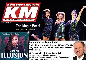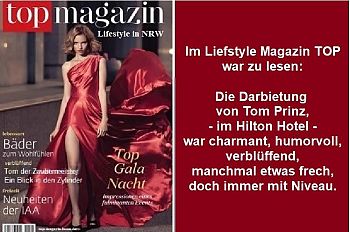 Die Darbietung von Tom Prinz ist charmant, humorvoll, verblüffend, manchmal etwas frech - doch immer mit Niveau. (aus dem Lifestyle Magazin Top)