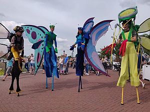 Wir können verschiedene Stelzen-acts (Bis 20 Kostüme) mitnehmen und spielen. Mobile Anlage ist dabei und für den Bus brauchen wir P-platz in die nahe.