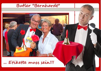 Ob biederer Butler, komischer Kellner, schräge Security ... - ob Firmenfeier in Friesland, Sommerfest in Sibirien, Hochzeit im Hochgebirge ...; "Willys" amüsante Situations-Komik lässt kein Auge trocken, versetzt Ihre Gäste sofort in beste Feier-Stimmung!